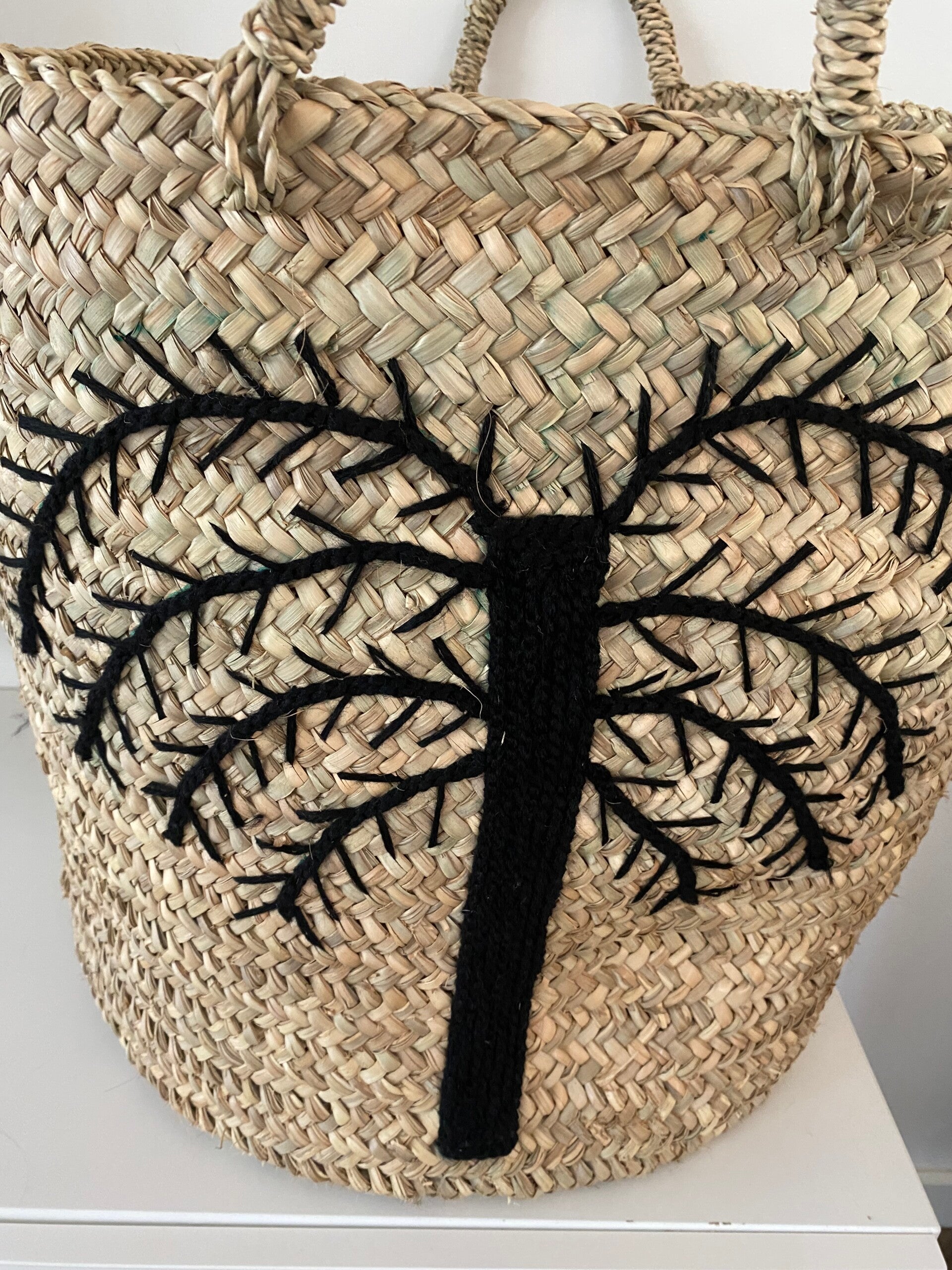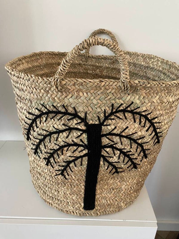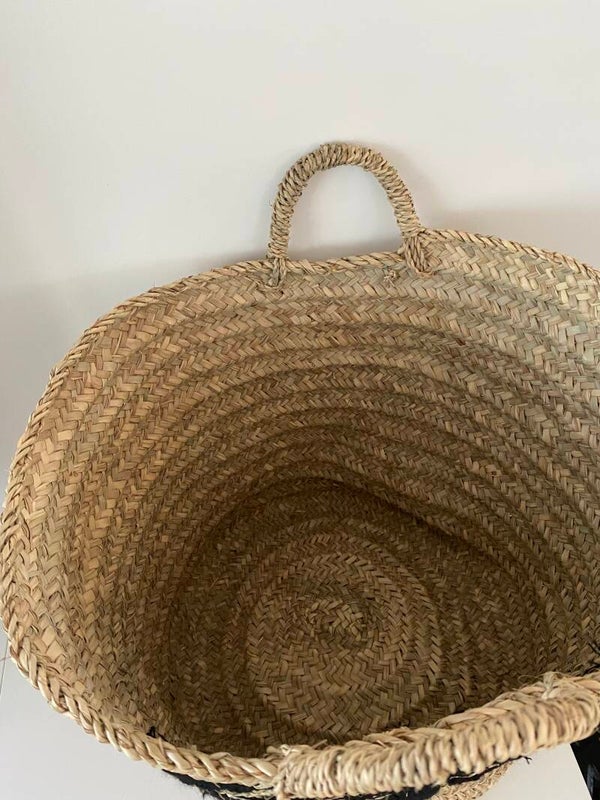 Deze hand gevlochten rieten mand is afkomstig uit Marokko.