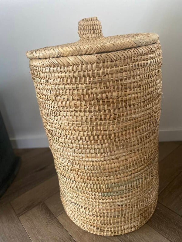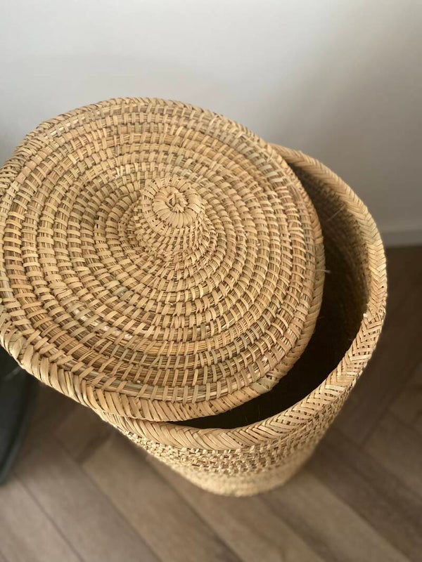 Te gebruiken als Opbergmand - wasmand etc. Afmeting: 70 cm hoog en 40 cm doorsnede