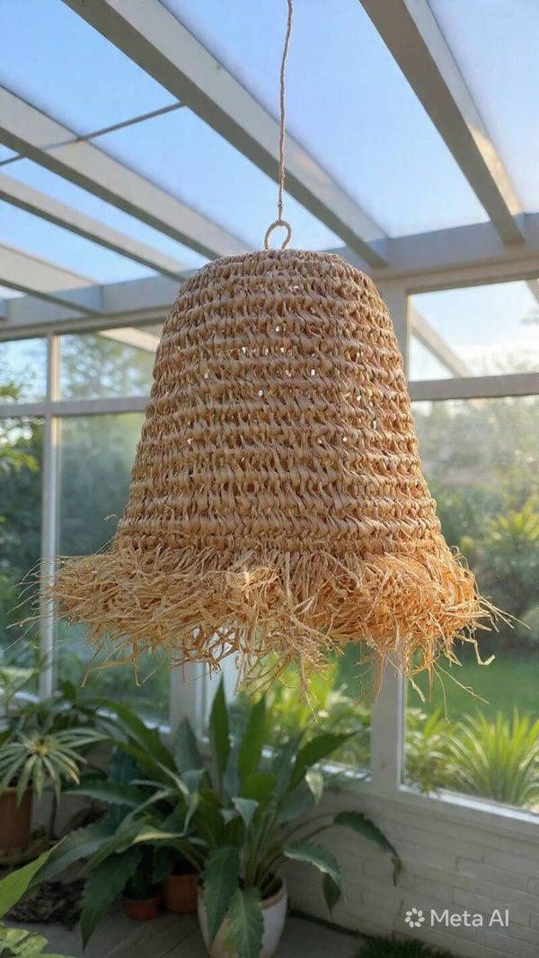 Leuke speelse lampenkap gemaakt van raffia naturel.